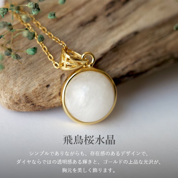 桜のように淡く、優しい色合いが魅力的な「飛鳥桜水晶」をトップに仕上げ、SV935の輝きと水晶の模様が、上品でありながらも派手過ぎず、柔らかな印象を与えてくれます。